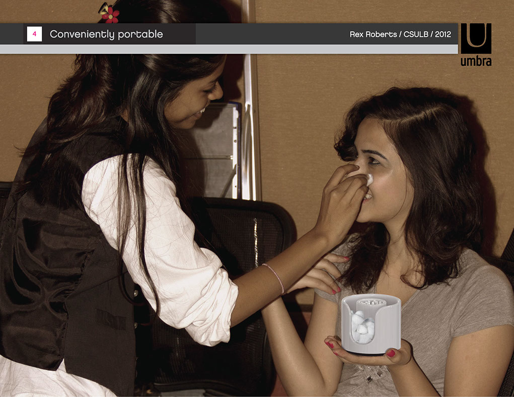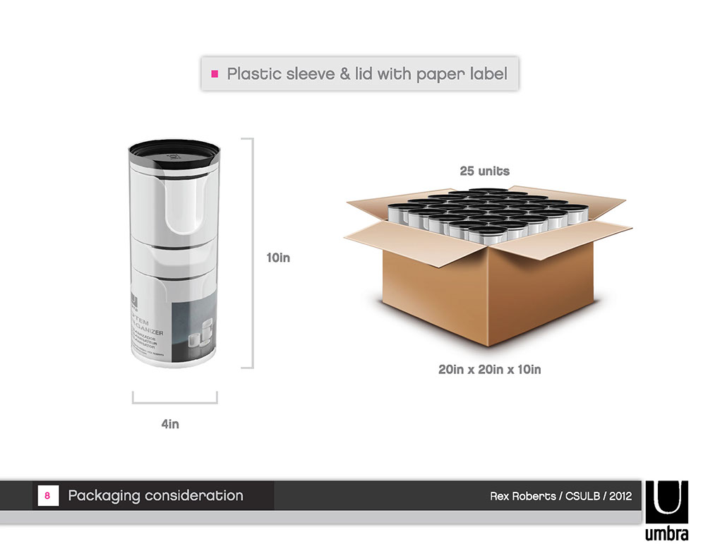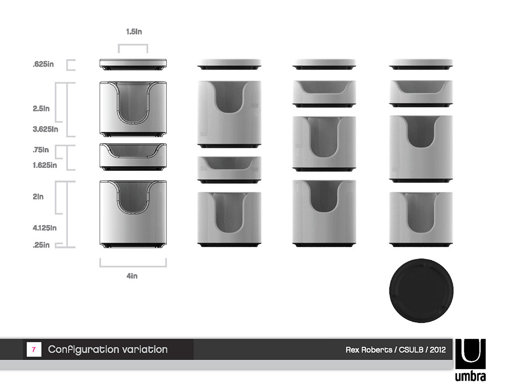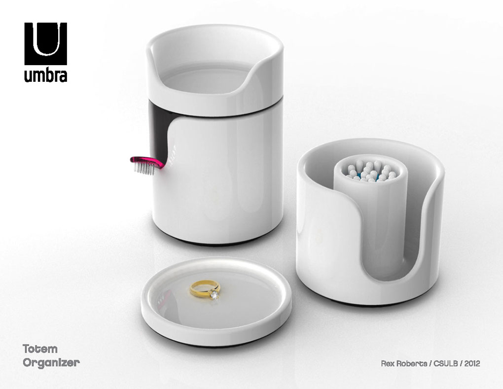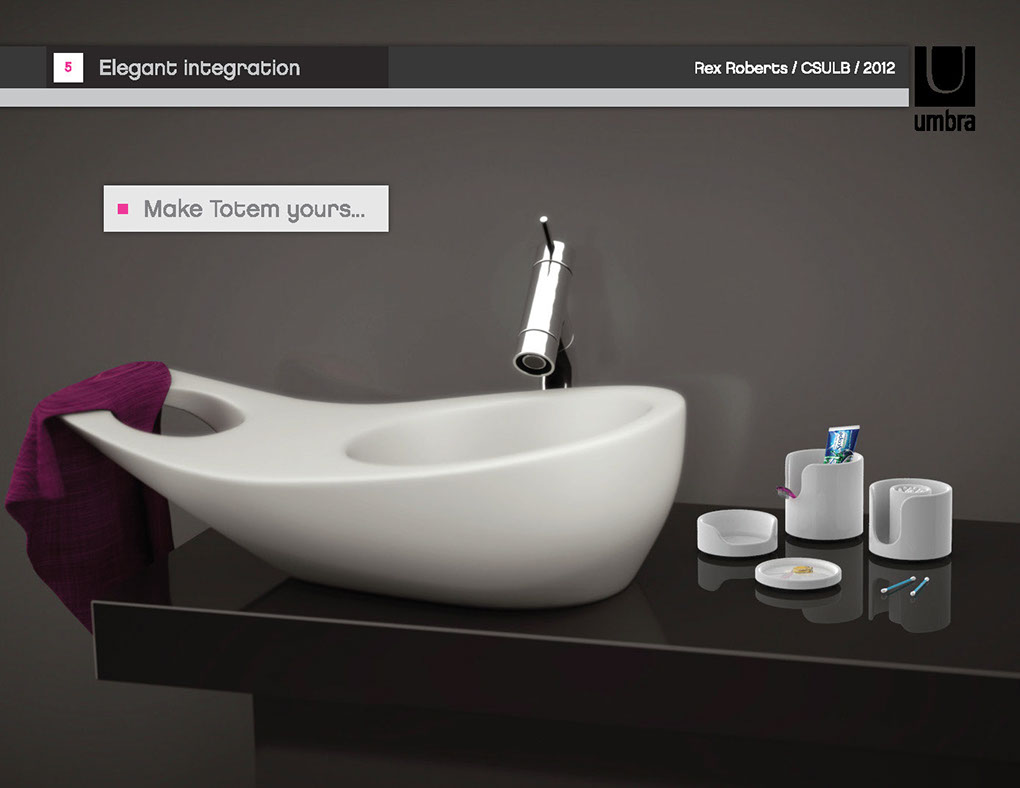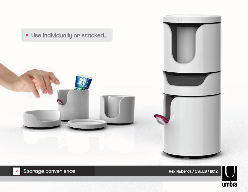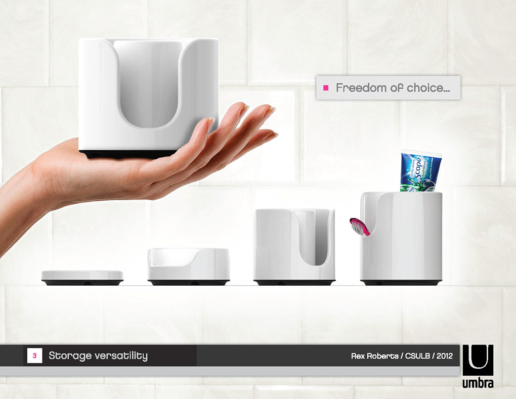 This project earned 3rd place in the 2012 Umbra Design Collaborations Project. The goal was to create a thoughtful and elegant solution to an everyday problem, which in this case is bathroom organization.